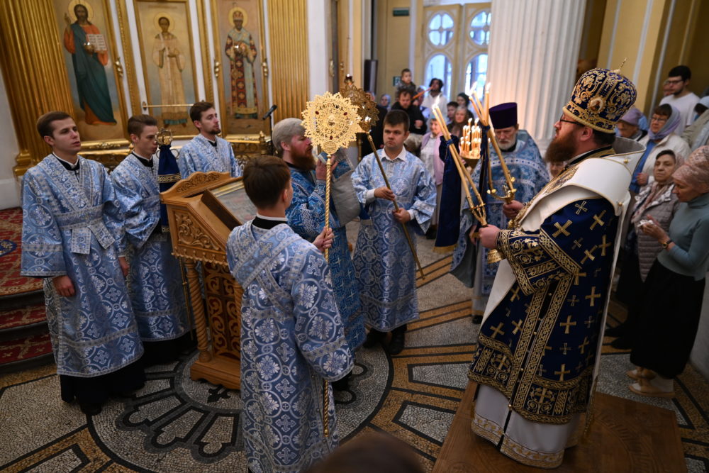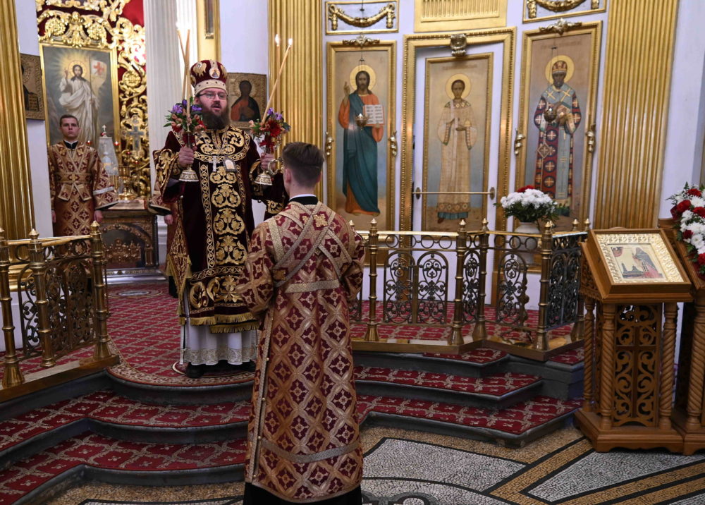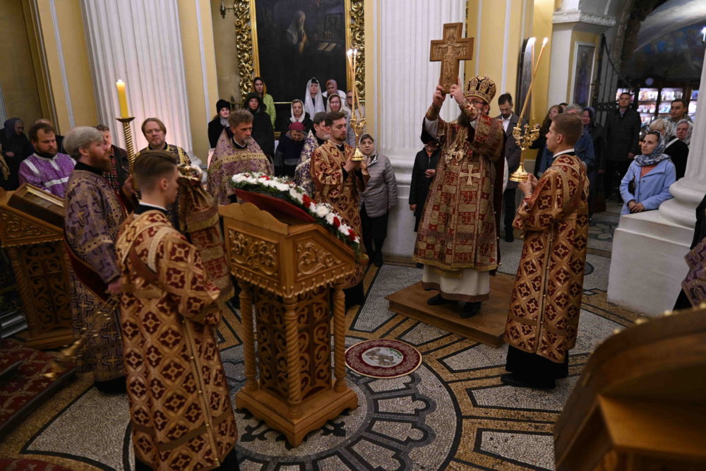 По окончании Божественной литургии было совершено славление с чтением молитвы священномученику Константину и поклонение Кресту Господню.